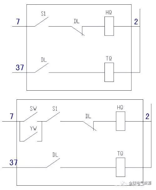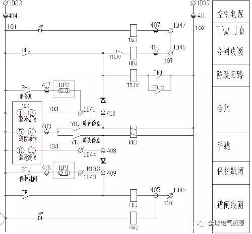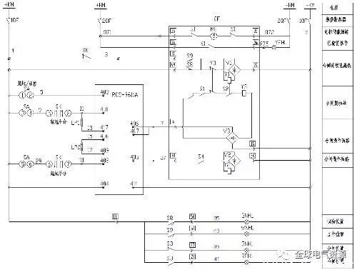 圖10為操作回路,主要包括控制手柄、微機操作回路和斷路器機構的配合。請把圖片放大一點(點擊查看大圖)。在許多簡圖中,斷路器機構的合閘回路通常如圖11所示:“彈簧儲能S1常開”、“斷路器分閘DL常關”、“合閘線圈HQ”串聯,或增加“試驗位置SW和操作位置YW常開且并聯”來表示“斷路器手車只能在試驗位置和操作位置閉合”。事實上,VS1斷路器通常配備有閉合鎖定電磁鐵,該電磁鐵由手車行程開關(類似于繼電器)控制。當手車處于測試位置和操作位置以外的位置時,電磁鐵斷電,其輔助觸點斷開閉合電路。這屬于中央機柜的電氣鎖定(中央機柜還有許多其他電氣鎖定,例如通電時無開口開關柜后門等)。)。