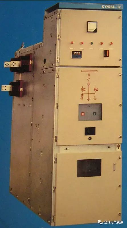 KYN28A(GZS1)中央機柜為10kV開關柜型,較常用于城市地區變電站型。從前面看,它顯然分為三部分,頂部是繼電器室,中間是斷路器室,底部是空室(什么也沒有)。母線等高壓設備安裝在柜體后部。如圖1所示。