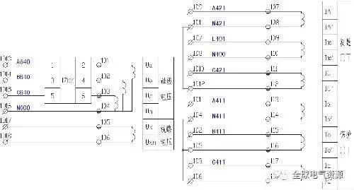 圖9為電壓電路,包括:保護電壓(和測量電壓)和測量電壓,均從機柜頂部的小母線引出。保護電壓在進入保護裝置之前必須通過空氣開關,如圖4QF所示。不需要測量電壓。