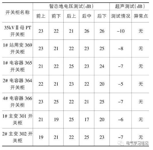 當開關室內的背景噪聲值低于20毫伏,測量值高于30毫伏時,表明開關柜有局部放電,表明嚴重。為了消除故障,制定了停電修復缺陷處理方案。2016年5月12日,110kv 變電站35kVⅱ母線及其設備停電檢修。進行交流耐壓試驗。發現35kV母線PT開關柜上母線排a相支柱絕緣子有明顯放電現象。35kV母線PT開關柜頂部母線倉蓋現場打開。人們發現公共汽車垃圾箱被嚴重污染了。同時發現母線a相支柱絕緣子有表面閃絡放電痕跡,并伴有燒損現象。之后,徹底清潔母線箱,更換A相支柱絕緣子。然后做交流耐壓,絕緣合格,無異常聲音。送電后運行24小時后,再次進行局部放電試驗,此時開關柜,瞬態接地電壓和超聲波局部放電數據正常(試驗數據如下表所示),放電缺陷消除。