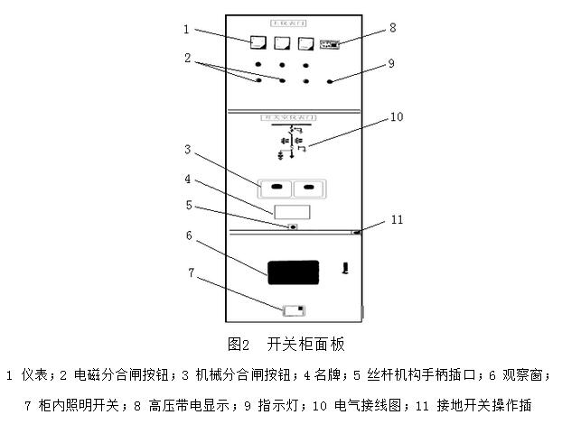 第二,開關(guān)柜面板開關(guān)柜面板分為兩部分:儀表門和開關(guān)儀表門。儀表門主要完成儀表檢測、帶電檢測、信號燈監(jiān)控和就地電氣操作;開關(guān)儀表門主要完成開關(guān)接地開關(guān)的就地機(jī)械操作。